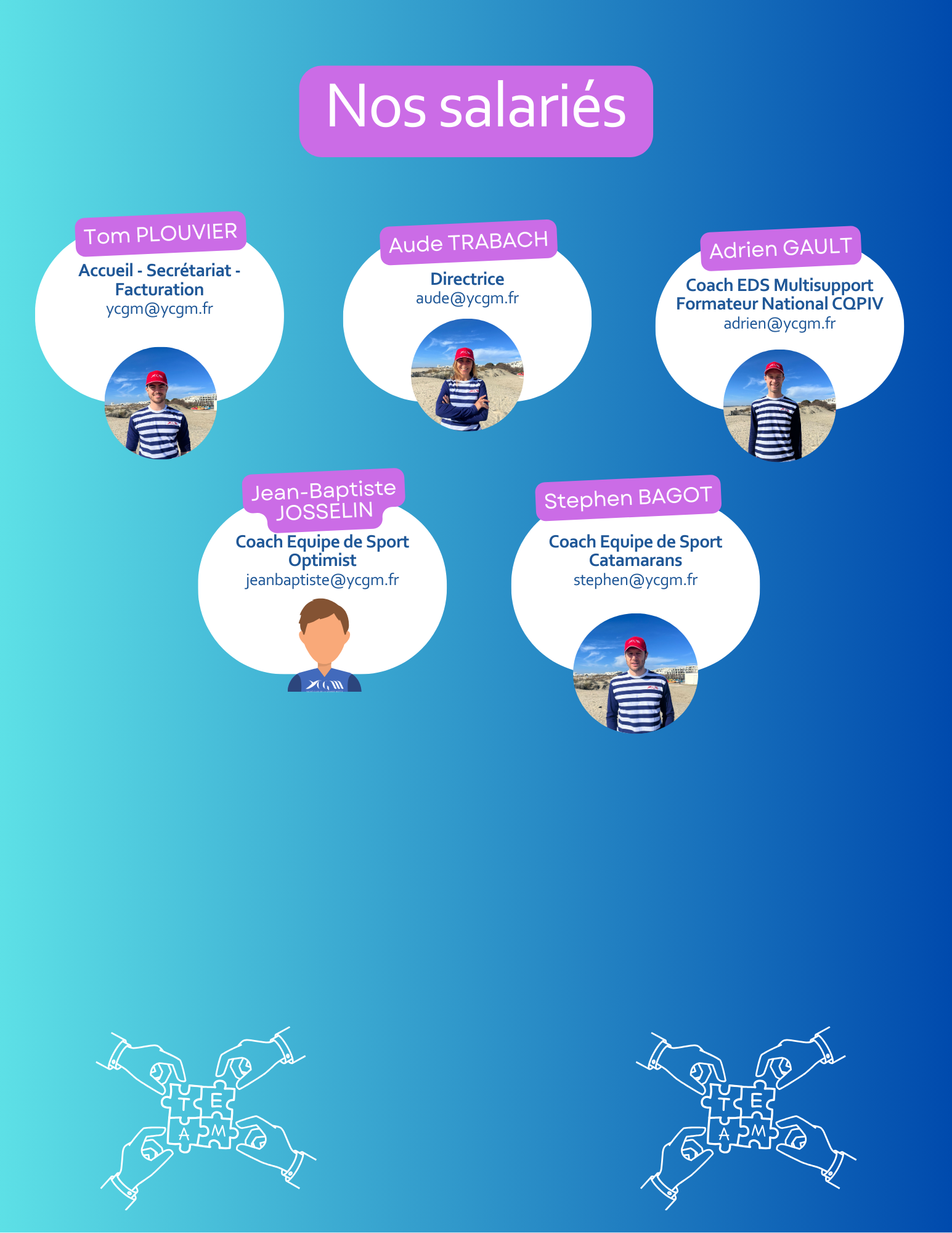 Une équipe d’hommes et de femmes au service des membres du Club, aidés dans leur passion par un bon nombre de bénévoles du Club sans lesquels les organisations de régates, entre autres, seraient impossibles.